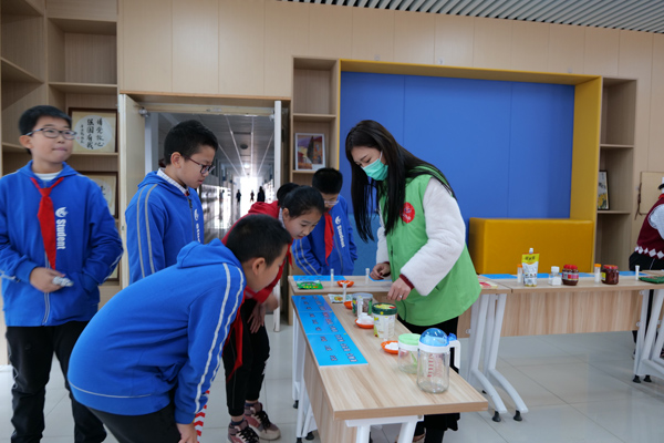 健康科普展及常见“高糖”“高盐”食物展吸引了不少学生驻足围观
