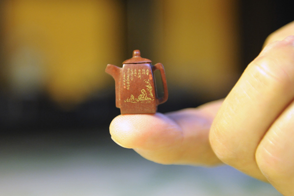 在“三绝酒具”极其微小的壶身和酒杯上一共刻了300个字