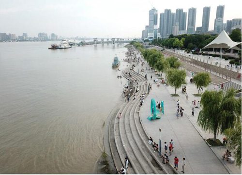 △2018年8月4日拍摄的武汉汉口江滩(无人机照片)。2019年1月至11月,长江经济带优良水质比例达82.5%,优于全国平均水平6.1个百分点。