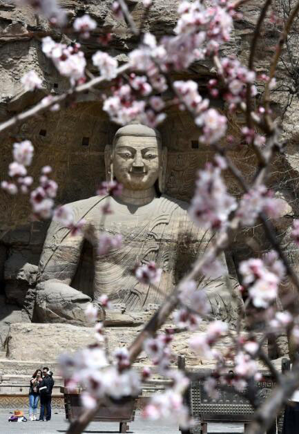 游客在云冈石窟景区参观(新华社记者燕雁 摄)