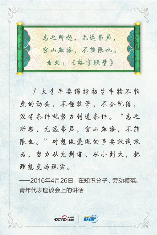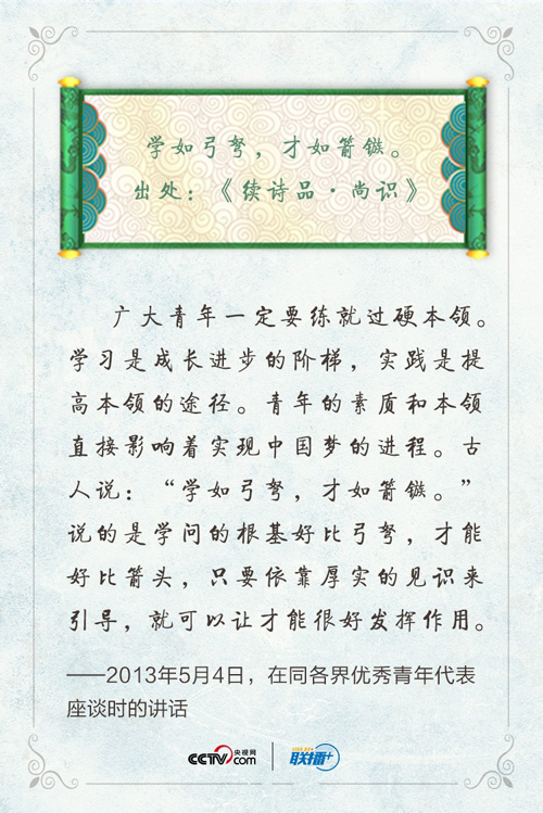 青年兴则国家兴,青年强则国家强。党的十八大以来,习近平总书记在同青年谈心、给青年回信、参加青年活动时多次引用古文诗句勉励青年,为青年走好人生路提供强大精神指引。央视网《联播+》特梳理,与您共同感悟习近平总书记对青年的深情寄望。