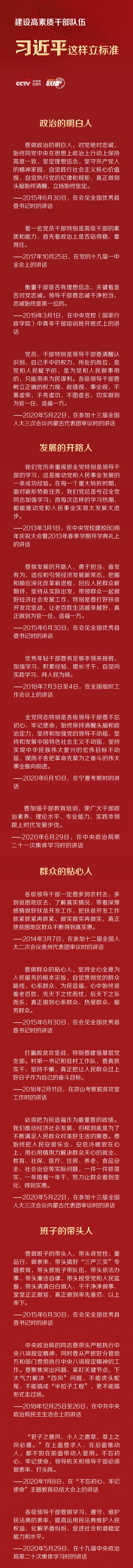 党的干部是党和国家事业的中坚力量。“为政之要,惟在得人。”习近平总书记始终高度关注干部队伍建设,在不同场合围绕培养选拔新时代党和人民需要的好干部,创造性地提出一系列选人用人的新理念新思想新要求,为新时代好干部队伍立标准。