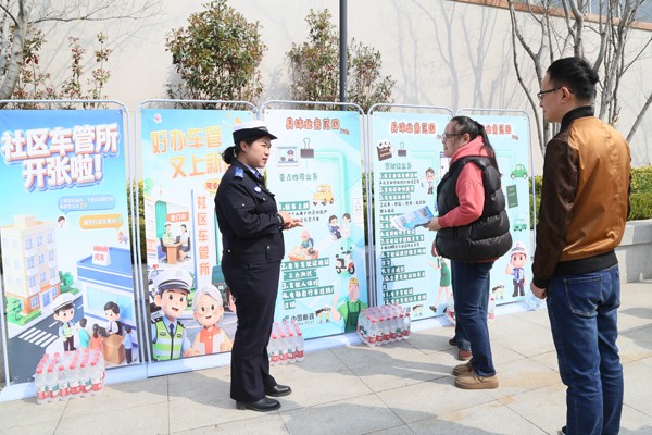 3月28日,济南市社区车管所第一站在市中区秀智社区开张了,济南市民康菲菲开着新买的爱车前来办理挂牌业务。