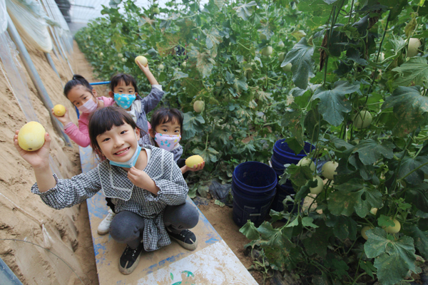 济南章丘区高官寨镇是有名的“甜瓜之乡”,这里的甜瓜种植面积约5万亩,全镇约2.3万人参与种植,甜瓜年产值超10亿元。今年的第一茬甜瓜已经成熟,走进高官寨的甜瓜种植基地,不仅可以品尝到香脆的甜瓜,还可以体验坐着“火车”摘瓜的乐趣。