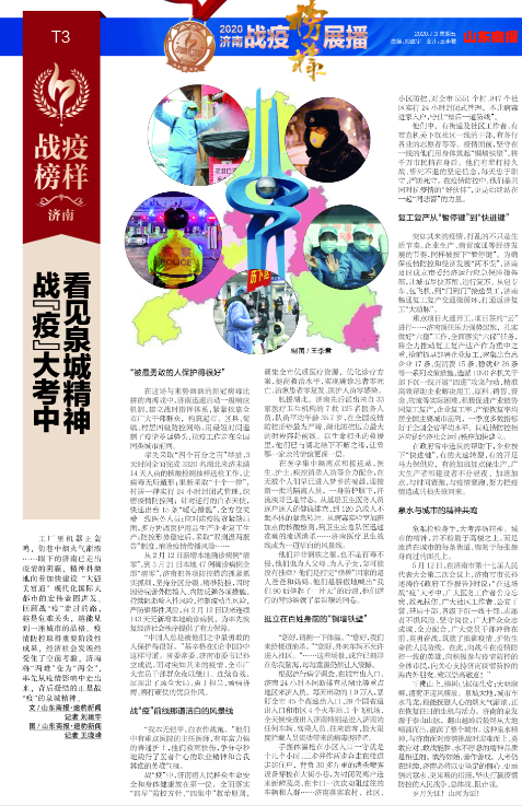 在这场与来势汹汹的新冠病毒比拼的肉搏战中,济南迅速启动一级响应机制,建立战时指挥体系,紧紧依靠全市广大干部群众,构筑起市、区县、街镇、村居四级防控网络,用最短时间遏制了疫情蔓延势头,抗疫工作走在全国同类城市前列。