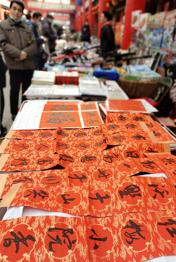 很多摊位已摆上了对联
