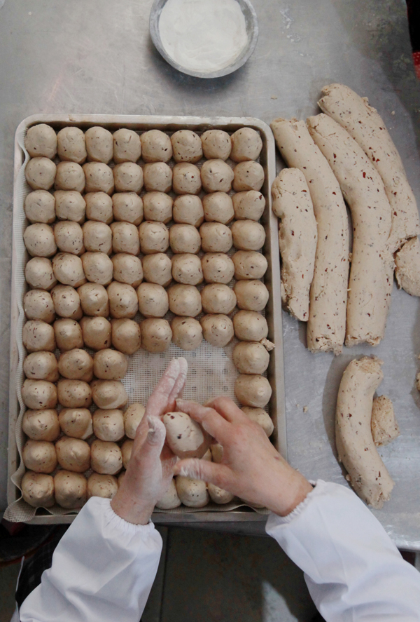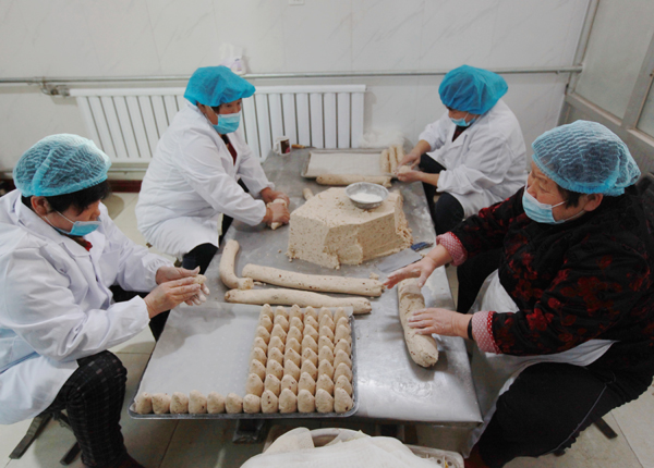 王善军的家人和工人们正在后厨紧急赶制年糕
