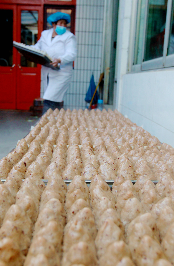 年糕面用十斤糯米粉加四斤枣的比例配成
