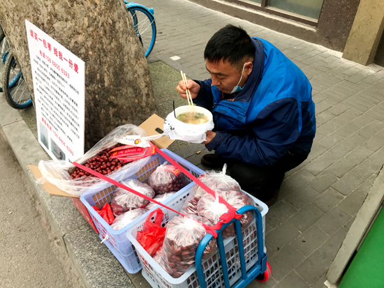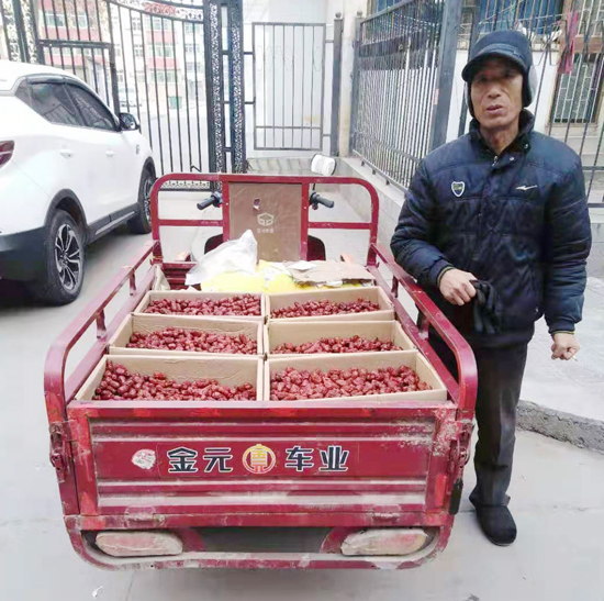 高昂的医药费用,让几个本就不富裕的家庭无力承担。“我的生父魏爸爸在陕西一个农场工作,老板听说了这件事后给了爸爸些枣子,说可以卖卖枣子筹钱治病。”于是,亲生父亲将红枣发到山东,郭学成的养父与继父分别在老家德州、治疗地济南一起卖枣筹钱。父亲们的摊位上都立有介绍郭学成病情的展牌,过往的路人看到后,大多会伸出援手,有的还会电话联系郭学成予以鼓励。3斤一袋的红枣,售价20元。很多好心人看到摊位上写的情况介绍后,会多给些钱,有的买一包给50元,有的给100元,还有的给200元。