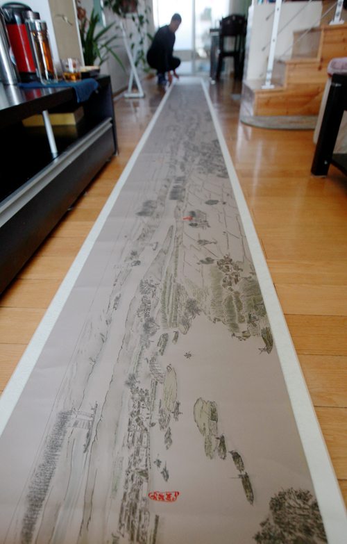 济南市民杨勇今年62岁了,他耗时6年,用掉数千张稿纸,绘制了一幅长15米、宽0.5米的《小清河东流图》,首次用画卷的形式展现了济南小清河全貌,堪称济南版“清明上河图”。