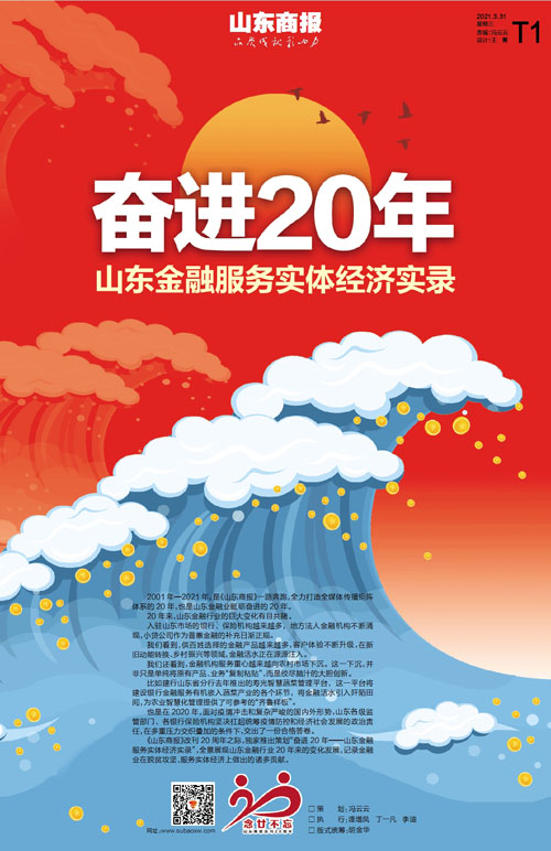 《山东商报》改刊20周年之际,独家推出策划“奋进20年——山东金融服务实体经济实录”,全景展现山东金融行业20年来的变化发展,记录金融业在脱贫攻坚、服务实体经济上做出的诸多贡献。
