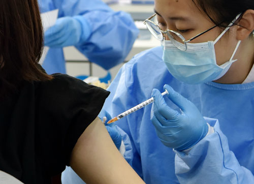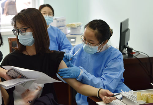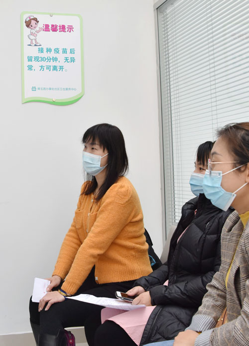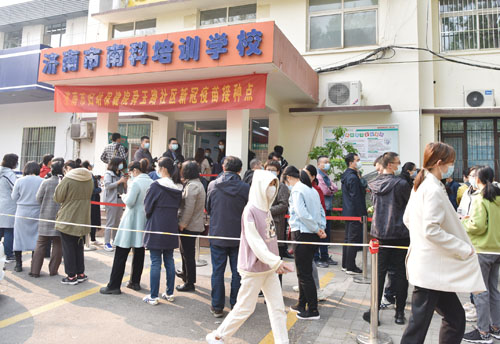 在舜玉路社区新冠疫苗接种点接种疫苗的市民络绎不绝