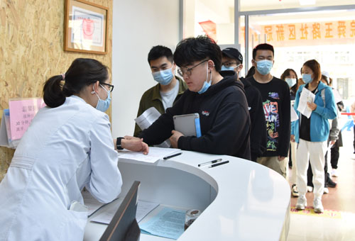 排队领表进门,医生介绍完注意事项后再用电脑录入信息,进行健康筛查