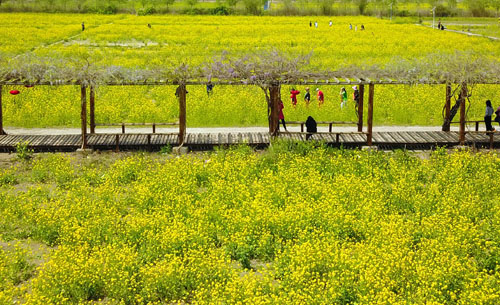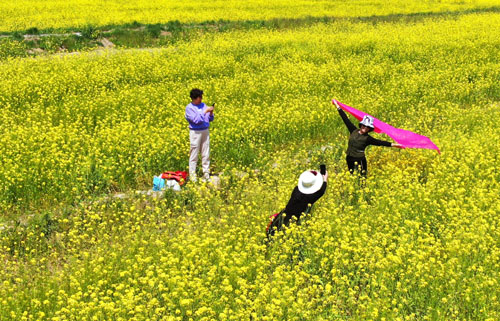 据了解,油菜花已经进入盛花期,花期会持续半个月左右的时间。度过春天最好的方式,就是跟花海相逢。穿梭在油菜花的田埂小道,欣赏金色的花朵随风摇曳,深吸扑面而来的花香,远离城市的喧嚣,徜徉在乡村田间的风景中,感受“人在花中走,如在画中游”。 ◎山东商报·速豹新闻网记者 赵天羿 摄影报道