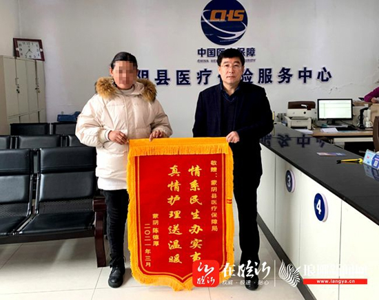 一大早,蒙阴县医疗保险事业中心上演了温馨的一幕,家住蒙阴县蒙阴街道南官庄村的陈先生女儿将“情系民生办实事 真情护理送温暖”的锦旗送到蒙阴县医疗保障局党组书记、局长石增坤的手中,感恩职工长期护理政策带给他们全家的温暖。
