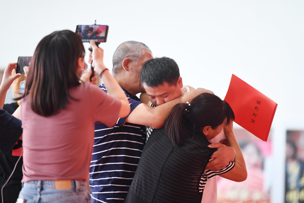 在山东主会场,3位被拐失踪人员与失散长达数十年的亲人相拥而泣。在三个分会场,有的失踪被拐人员与家人分离时仅1岁,有的失踪被拐人员凭借零星记忆多年来坚持寻亲……各会场认亲家庭向公安机关献上锦旗,感谢一代又一代办案民警数十年如一日、锲而不舍地坚守和付出。