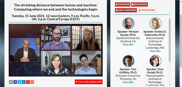 6月16日,天桥脑科学研究院(Tianqiao and Chrissy Chen Institute,TCCI)与《科学》杂志合作举办的线上研讨会召开。在一个小时的会议中,来自生物科技、认知科学、计算机科学、工程学及心理学背景的四位专家就“人类与机器渐行渐近:科技影响人类认知”主题,探讨了目前移动和可穿戴设备的发展现状,及移动数据收集在未来的前景和潜在问题。