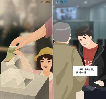 耐心地教他们使用智能通讯工具,学习如何“扫码坐车”、“扫码点菜”;