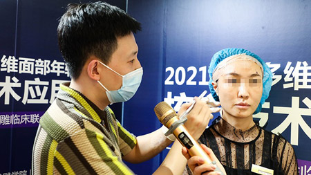为进一步推陈出新,全方位展现面部年轻化的操作原理及要点,本次峰会特设参会学习医生快翎线线雕实操演练活动,由隋冰院长现场亲自指导。