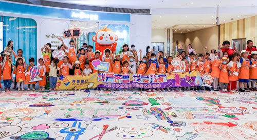 齐鲁银行举办“我爱齐鲁 我爱我家”大型百米画卷亲子绘画公益活动