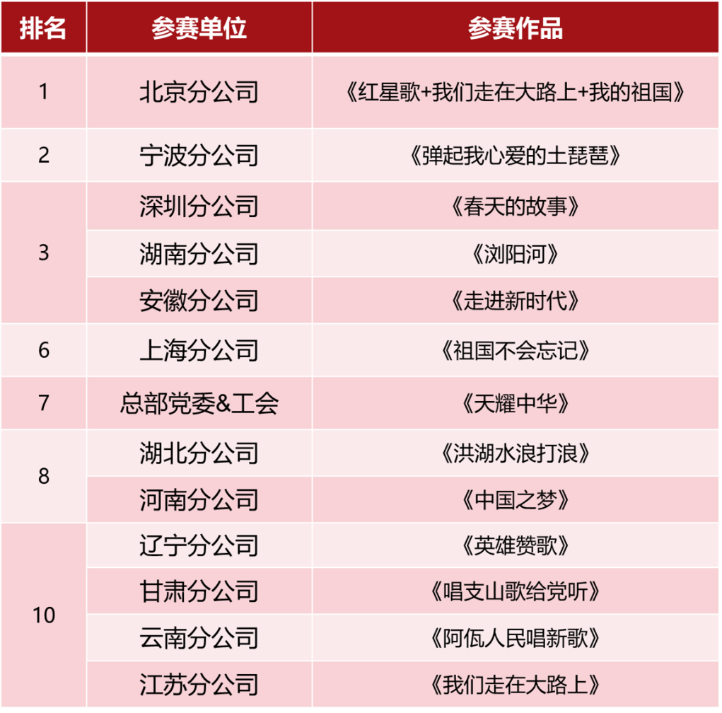 “唱支歌儿给党听”合唱比赛10强入围名单