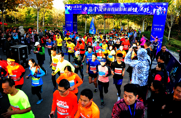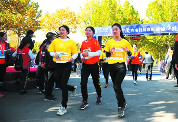 商报济南消息10月27日早上,济南彩虹湖风景区被一群热爱跑步的人们占据。“中国金茂”济南首届彩虹湖健康跑伴随着现场乐队的一首《爱之初体验》拉开了序幕,在立刻健身俱乐部教练带来的劲爆健美舞蹈中,参赛选手们摩拳擦掌、跃跃欲试。