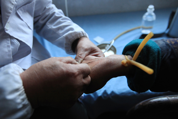 田乃义,现年58岁,他17岁开始从医,开始时,他的诊所只是两间不足20平米的小瓦房,需要他上门看病的主要是行动不便的老人和孩子,无论何时,只要接到病号打来的电话,田乃义都要第一时间赶过去,用他自己的话说:“行医以来几乎没有吃过一顿完整的饭,过过一个完整的除夕夜……”村子里都是山路,坡度大,40年来,田乃义摔过无数次,也受过各种伤。2012年一个下着大雪的冬天,为了去给三岔口村的七旬老人陈允同打针,田乃义骑车不慎摔进了两米深的沟里,摔断三根肋骨的他还坚持每天给老人按时打针;他们村有个老人患上了帕金森氏病,十多年来田乃义每月按时去她家一次,累计为她出诊近200次;田乃义还为村里的几百位老人建立了健康档案,每年固定为他们查体一次,个别患重症的老人,则每月拜访一次……为了给丈夫分担一部分辛劳,妻子丁俊香于30年前也考取了从医资格证。现在,他们的两个孩子也走上了行医的道路。