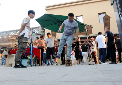 云廷臻的作品传承着扎刻牢固结实的特点,一位体重超过100公斤的游客踩上去体验了一番