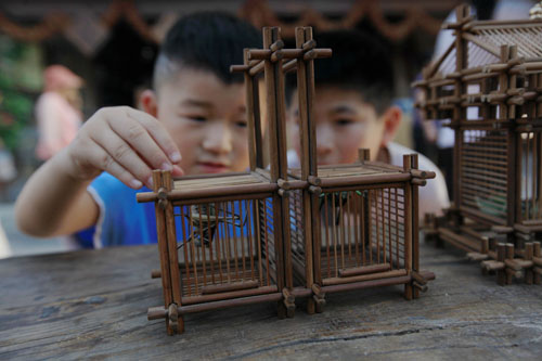 两位小朋友对云廷臻制作的蝈蝈笼产生了兴趣,而云廷臻的扎刻梦想亦是从父亲为他制作的蝈蝈笼开始的。