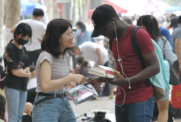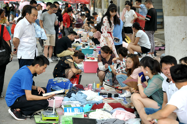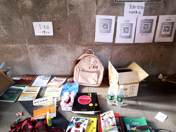 “长得好看随便送,扫码购物一律五元,考研攻略统统一元……”毕业季,省城各大高校的“跳蚤市场”陆续开市。校园内,毕业生们聚集在一起摆摊,将自己不用的物品放在市场上兜售,书籍、衣物、电子产品和各种饰品,每一件都是大学四年的美好回忆。琳琅满目的物件、低廉的价格吸引着学弟学妹前来“淘宝”。这其中书籍、考研资料占比最大,许多名校的考研资料成抢手货。为了招揽生意,有些毕业生们甚至将书本一块一本标价,有的甚至免费赠送。一些来自世界各地的留学生也加入到“淘宝”队伍中,用不太流利的汉语讨价还价。渐渐的,校园周边的市民以及学校的宿管和后勤老师也都来了,衣服、棉被、水壶等生活用品是他们的“扫货”目标。
