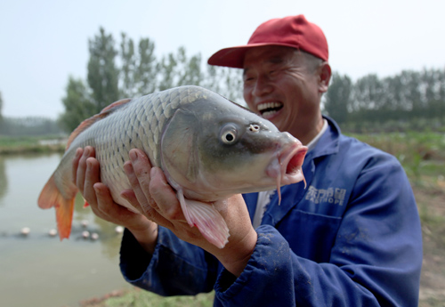 在中国传统文化里有“鲤鱼跳龙门”之说,当地人喜欢吃鲤鱼,因为它寓意吉祥,这也促成了当地渔业的发展,加之地处黄河下游,离黄河很近,养殖户便直接从黄河引水养鱼。“用黄河水养出的鲤鱼肉质鲜美,很有市场”,齐海德告诉记者。他一般在每年的三四月往鱼池放苗,八九月出鱼,鱼的适宜生长温度在29℃-31℃之间。齐海德的鱼池里还混养着草鱼,每年夏季打鱼时,需要雇六七个人同时下水,一网能打出3000多斤鱼。打上岸的鱼直接在岸边分类、装车,草鱼和鲤鱼要分开,分量较小的鱼还会被扔进池塘让其继续生长。黄河鲤鱼个头大,嘴边长着两条长须和两条短须,尾巴呈大红色。齐海德做的一道拿手菜就叫“蒜泥黄河鲤鱼”。