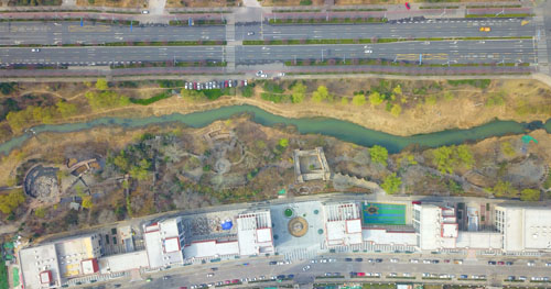 无人机空中俯瞰腊山河公园全貌