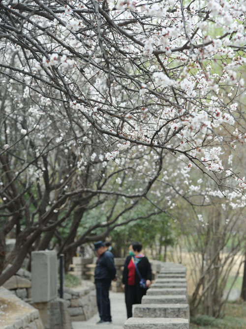腊山河公园杏花盛开引游人