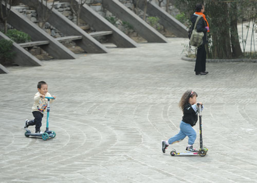 小朋友在公园内尽情玩耍