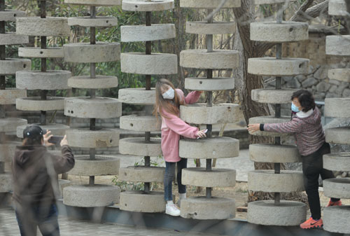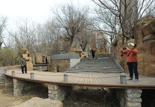 市民在景区内拍照游玩