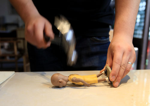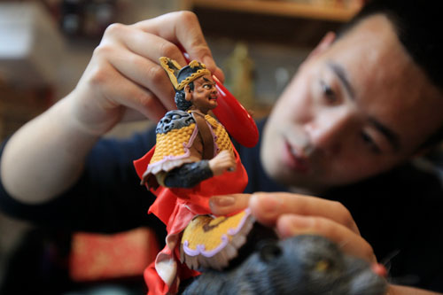 他自己调配出了第三代面塑配方,现在的作品不霉不裂,摔砸不坏