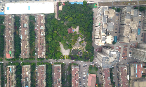 凤凰山海拔并不高,山旁的高层住宅将其包围