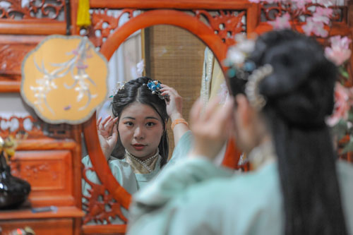 一年365天,无论做什么事舒秋红都会穿着汉服。如今,她经常奔波于省内的各种汉服文化活动中,汉服租售、设计妆造、制作各类发饰,她也经常组织汉服爱好者巡游,她想让更多的人穿上汉服,感受汉服的魅力。“汉服就像我生命中的一部分,我想让更多的人喜欢汉服,通过汉服这个载体,探寻服饰背后的故事,让更多的人了解中国传统文化,喜欢上中国传统文化。”舒秋红说。