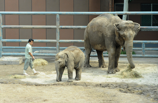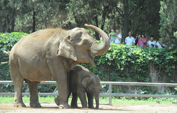 济南动物园大象母子深受市民游客喜爱