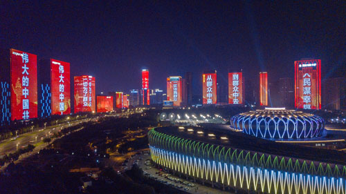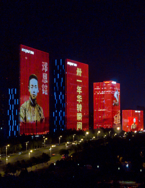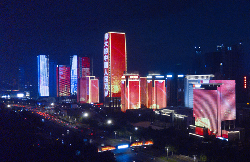 连日来,每当夜幕降临,济南东部多处楼宇建筑被点亮。鲜艳的党旗、雄伟的万里长城、承载千钧的南湖红船,一幅幅震撼人心的红色画卷在联动的楼宇间缓缓展开,“不忘初心、牢记使命”“伟大的中国共产党万岁”“伟大的中国人民万岁”等祝福语相继点亮,为济南市民献上了一场视觉盛宴,共庆中国共产党百年华诞。