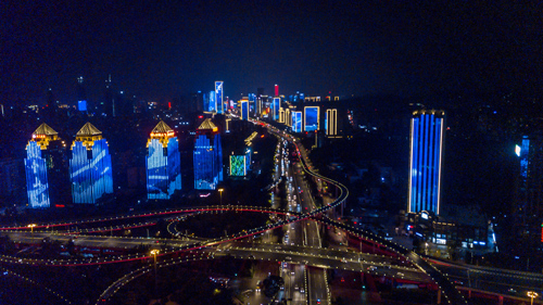 夜幕降临,经十东路灯火璀璨