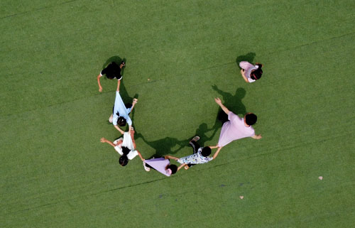 课间休息,一起玩老鹰抓小鸡
