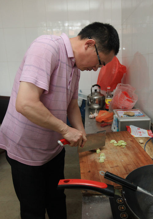 中午不回家,张继峰就在学校的厨房内简单做顿午饭