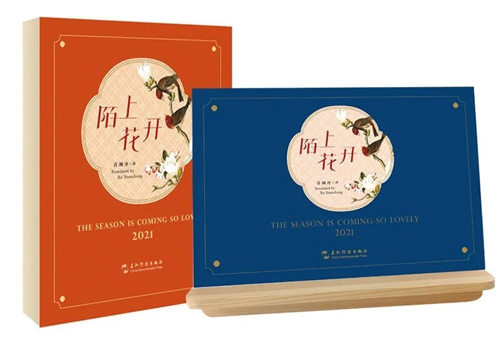 除了以故宫博物院为代表的“老字号”博物馆以文物为载体记录时光,在众多的文创日历中也不乏回归传统之作,集知识性和传统性于一体的科普类日历也占有一席之地,比如《陌上花开》2021年双语古诗词台历。