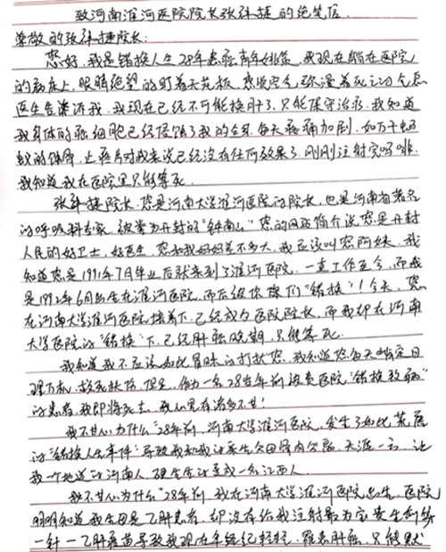 “我知道我身体里的癌细胞已经侵蚀了我的全身,每天疼痛都在加剧,如万千蚂蚁般疼得蚀骨。止疼片对我来说已经没有任何效果了,刚刚注射完吗啡,我知道我在医院里只能等死!”在写给河南大学淮河医院院长张祎捷的信件中,姚策对于自己今后的治疗颇为消极。