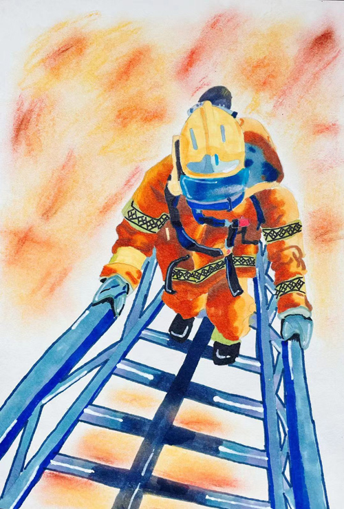 记者看到征集的作品中,小朋友们用自己五彩的画笔,画出了自己心目中的消防——有的消防员在洪水中抱着孩子,还有的消防员在大火中背出老人……水彩、水粉、素描,各种各样的绘画形式展现出小朋友心中消防员的样子。
