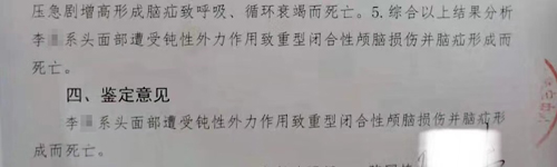 吴女士想起找到儿子时的场景,痛哭失声。据她介绍,找到小皓尸体后第二天,警方进行了尸检。法医鉴定意见书显示,小皓系头面部遭受钝性外力作用致重型闭合性颅脑损伤并脑疝形成而死亡。“我不会说术语,我娃娃是被打死的,主要伤势在头部。”吴女士说。