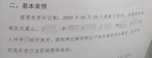 该鉴定书同时显示,据延安市公安局宝塔分局委托资料记载,2020年8月28日凌晨3时许,在延安市宝塔区凤凰山,包含小诚在内的6人将小皓殴打致死。