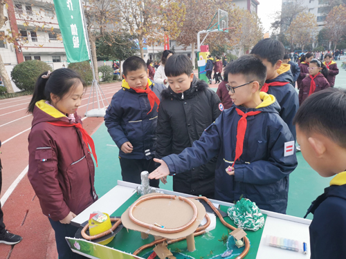 在科普实验区,济南市智远小学带来了微实验“磁悬浮列车”,实验模拟了磁悬浮列车行驶原理,队员们希望通过微实验来展示“中国力量”。“隐形文字”“马达发电机”“3D全息投影”……每个微试验展示区前都有不少师生参观学习,上演着一场场科普盛宴。