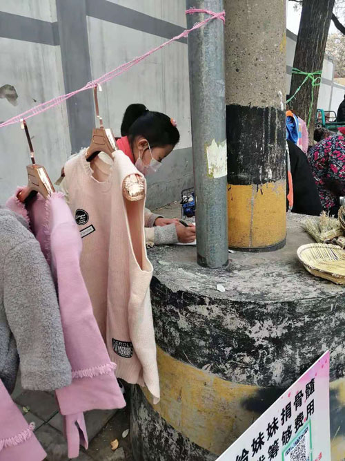 12月11日上午,正在摆摊的栾兴涛告诉记者,他们在齐鲁儿童医院住院的时候通过水滴筹平台筹到九万五千元,“已经花了20多万了,手术费还差30多万。”